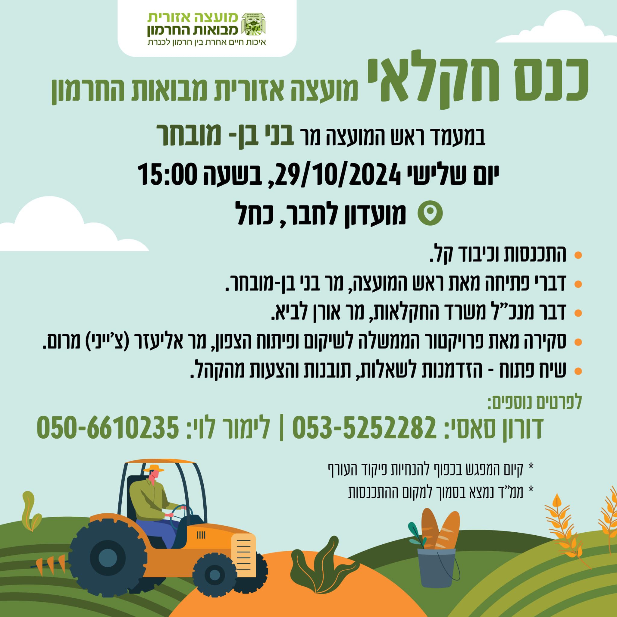 כנס חקלאי מבואות החרמון 29.10.2024 - מהרו להירשם!