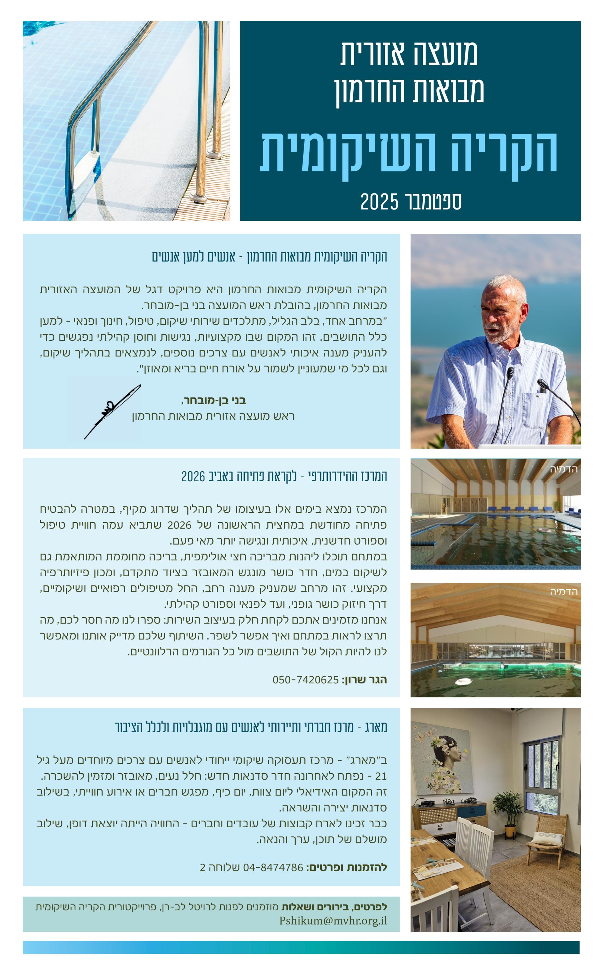 ניוזלטר הקריה השיקומית מבואות החרמון - ספטמבר 2025