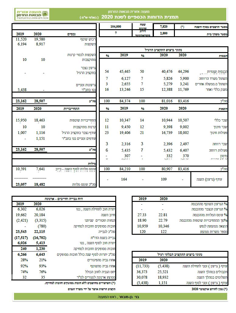 הדוחות הכספיים לשנת 2020