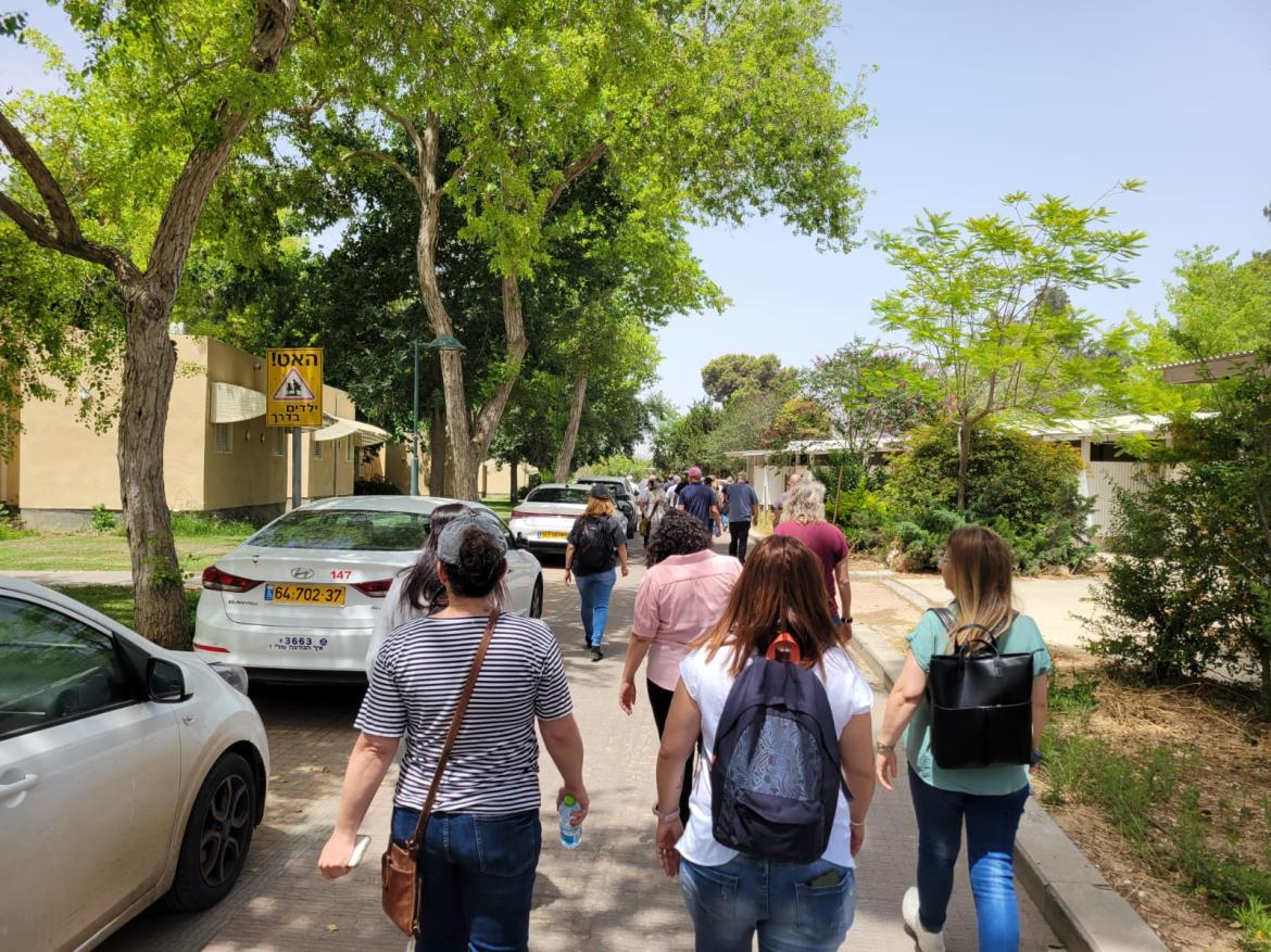 הם סיירו בין מוקדי הזוועה עם עמית שלוי, יו"ר הקיבוץ.
