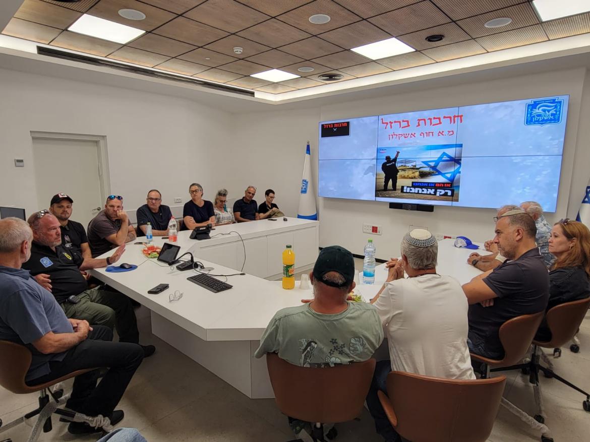 הסיור התחיל במועצה אזורית חוף אשקלון, שם נפגשו עם איתמר רביבו, ראש מ.א חוף אשקלון ועם אמנון זיו, קב"ט המועצה, שתארו את השתלשלות האירועים והתנהלות המועצה באירועי השבת השחורה.