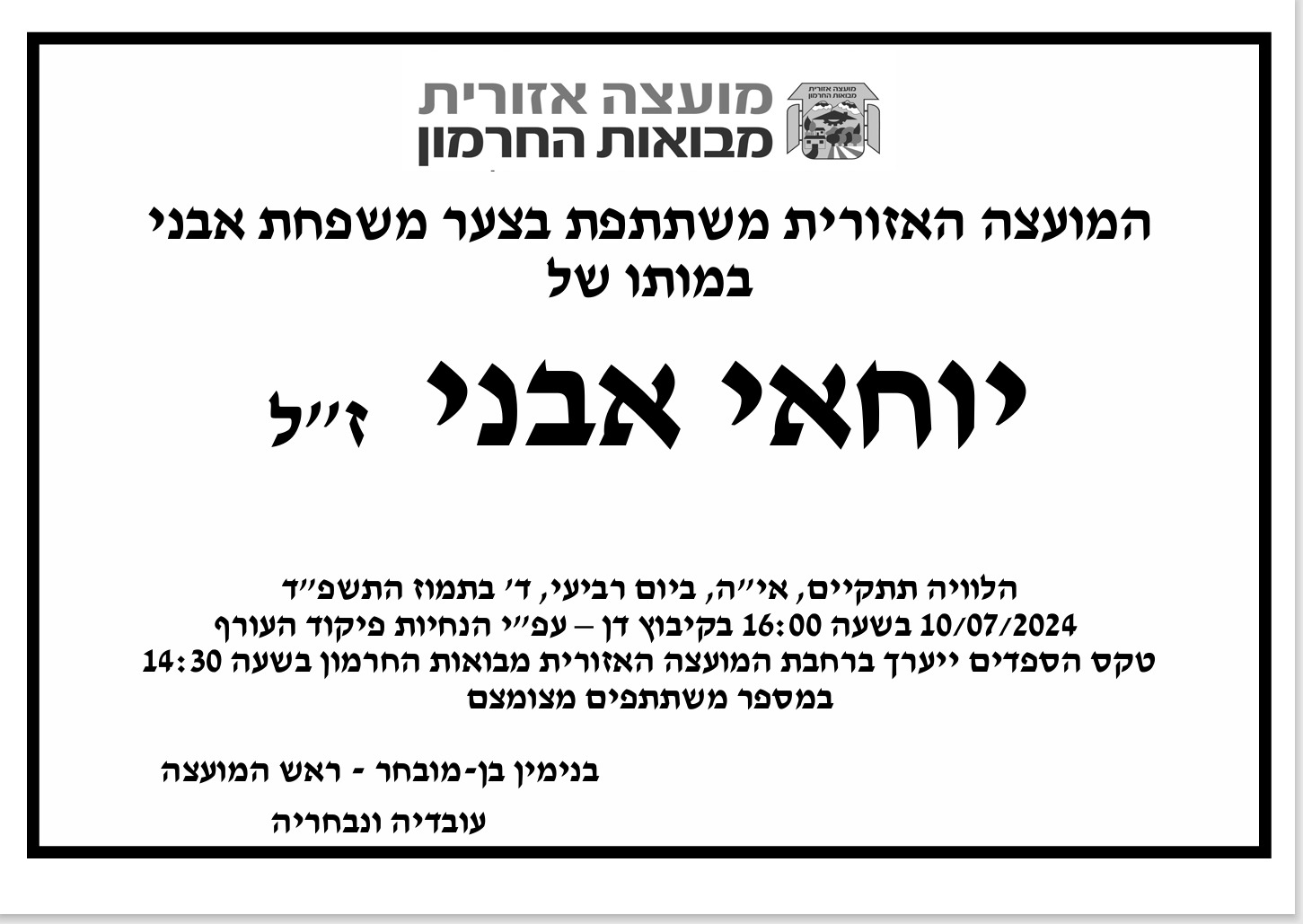 מועצה אזורית מבואות החרמון משתתפת בצער משפחת אבני,