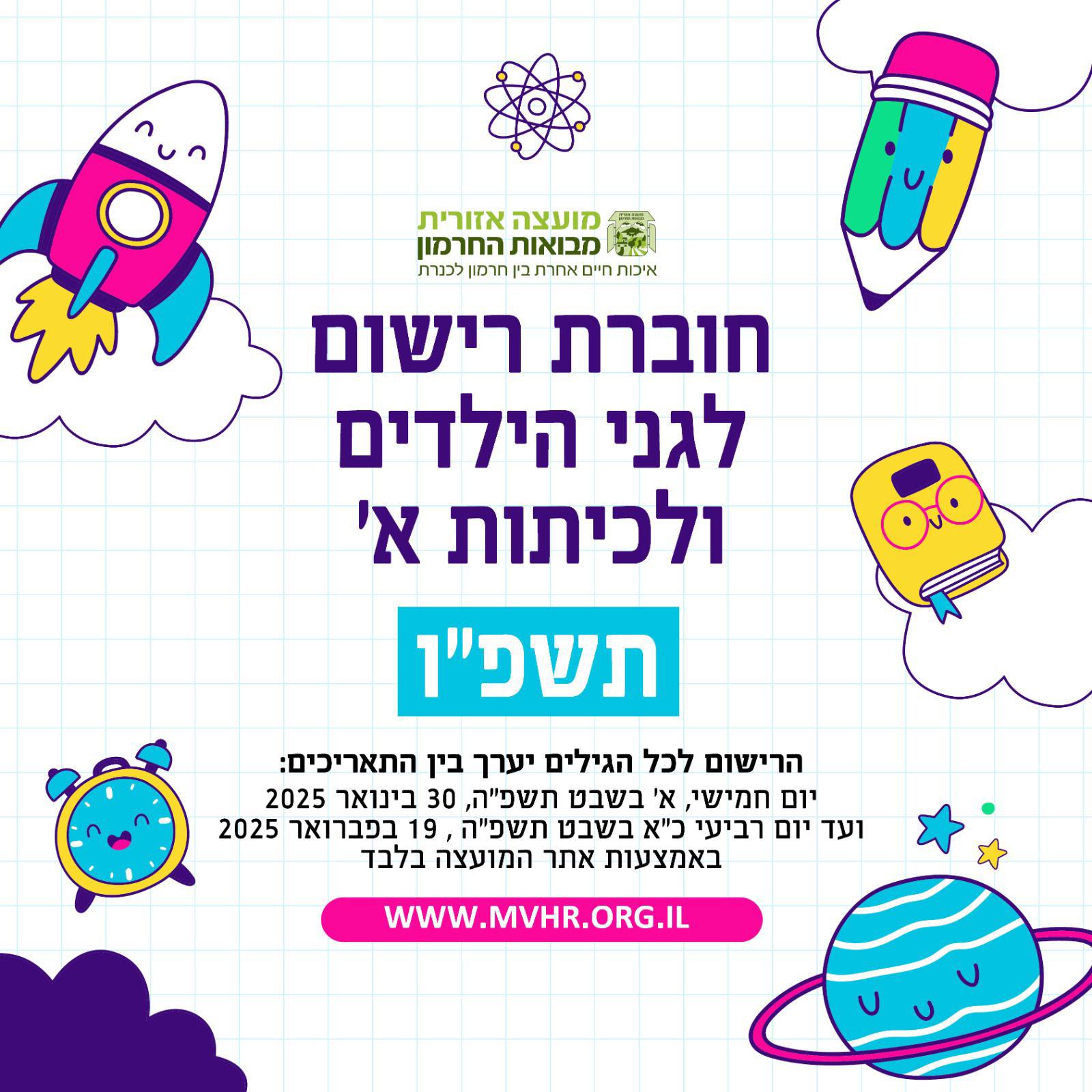 רישום לגני הילדים ולכיתות א' - שנת הלימודים תשפ"ו!