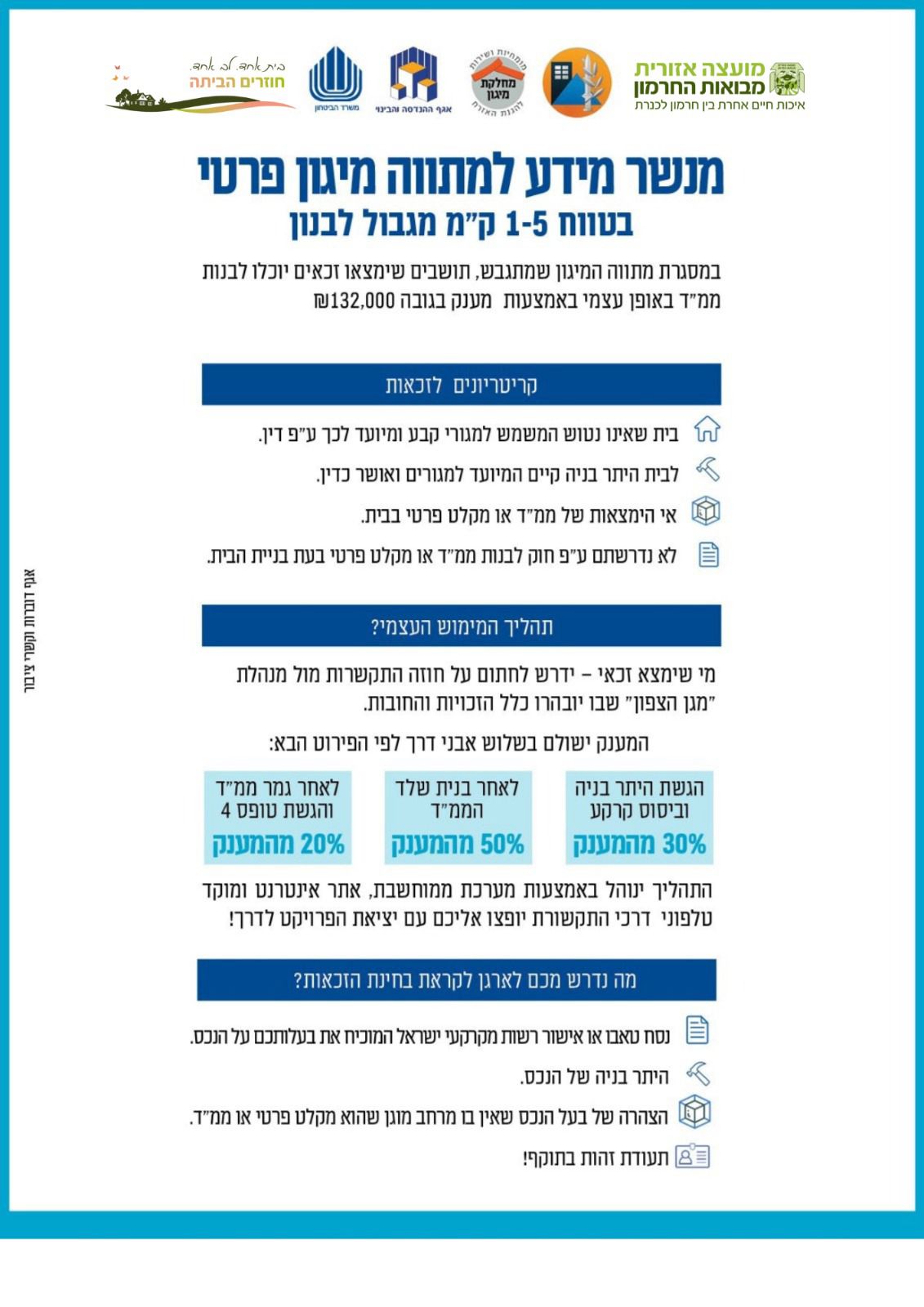 מתווה המענק לבניית ממ״ד ביישובי 1-5 ק״מ מגבול הלבנון התפרסם!