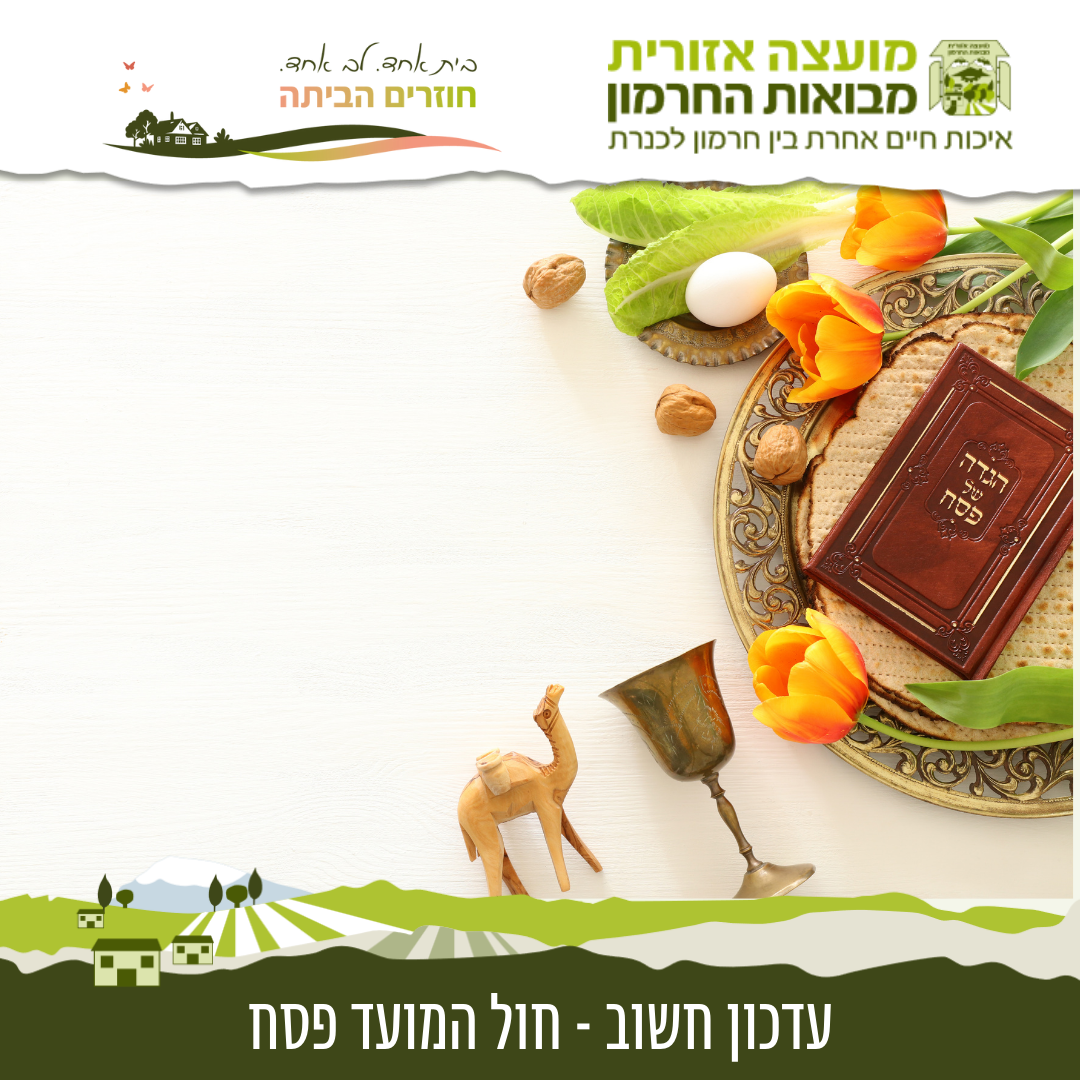 במהלך ימי חול המועד פסח, בין הימים ראשון עד חמישי (13-17.04.2025), לא תתקיים קבלת קהל במשרדי המועצה האזורית מבואות החרמון.