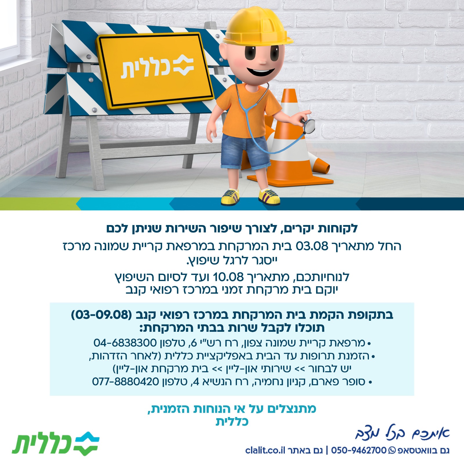 לתשומת ליבכם, בית המרקחת במרפאת קריית שמונה מרכז ייסגר לשיפוצים החל מ־03.08.2025.